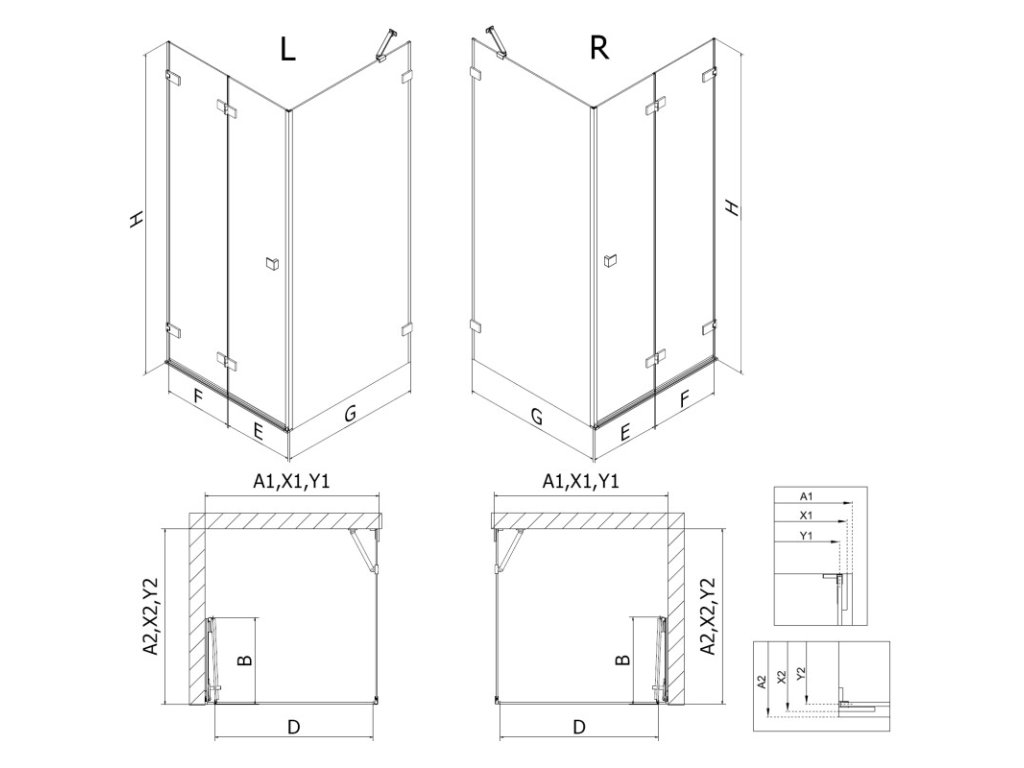 Specifikace produktu:Rozměr: 95x80 cm (levé dveře 95 cm, stěna 80 cm)