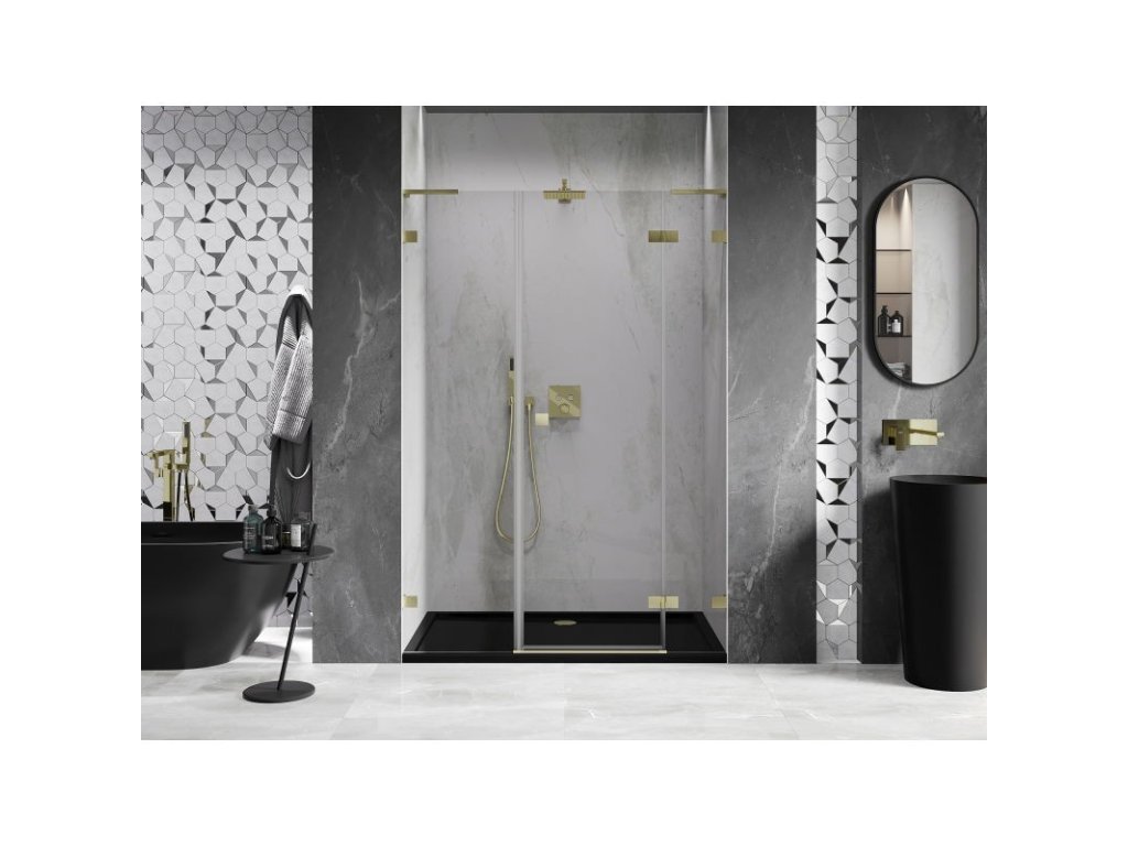 MEXEN/S - Lunar L sprchové dveře křídlové pravé 140, transparent, zlatá kartáčovaná 834SL-140-050-55-00-P