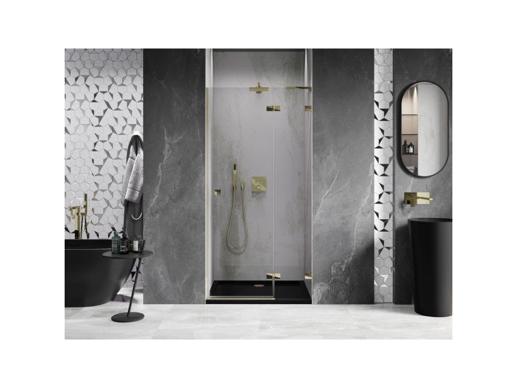 MEXEN/S - Lunar L sprchové dveře křídlové pravé 80, transparent, zlatá 834L-080-000-50-00-P