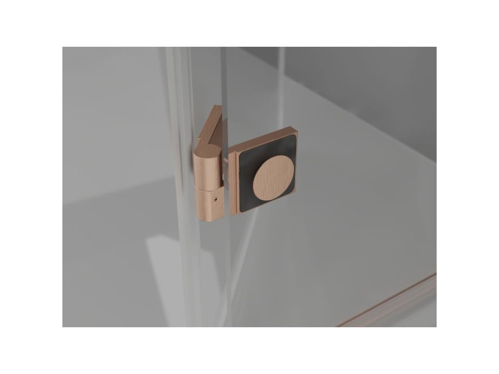 Specifikace produktu: Rozměr: 70x80 cm (pravé dveře 70 cm, stěna 80 cm) Výška: 200 cm Strana montáže: Pravá Vchod: Dveře s otočnými panty Barva skla: Průhledná Povrchová úprava: Kartáčovaná měď Profil: Hliník Stabilizátor ve tvaru L: Nerezová ocel Typ skla: Tvrzené Tloušťka skla: 8 mm Povrchová úprava pro snadné čištění Možnost nastavení šířky Dva montážní systémy: - S profilem, který umožňuje vyrovnání nerovností stěny - Bez profilu pro dokonale rovné stěny Možnost montáže na sprchovou vaničku nebo obklady Mechanismus pro zvedání a spouštění dveří Mosazné svorky a panty v jedné rovině se skleněnou tabulí Magnetický proužek a elastomerové těsnění pro odvod vody Hliníkový práh těsnění dveříDoplňkové parametry