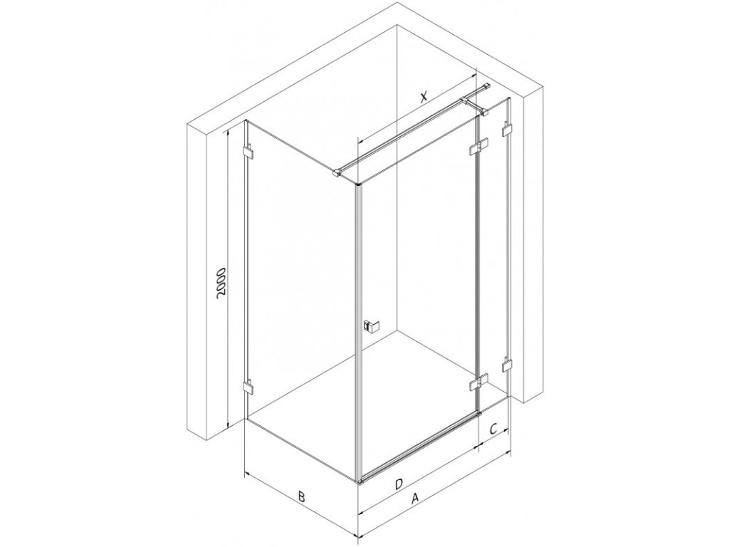Specifikace produktu:Rozměr: 120x70 cm (pravé dveře 120 cm, stěna 70 cm)