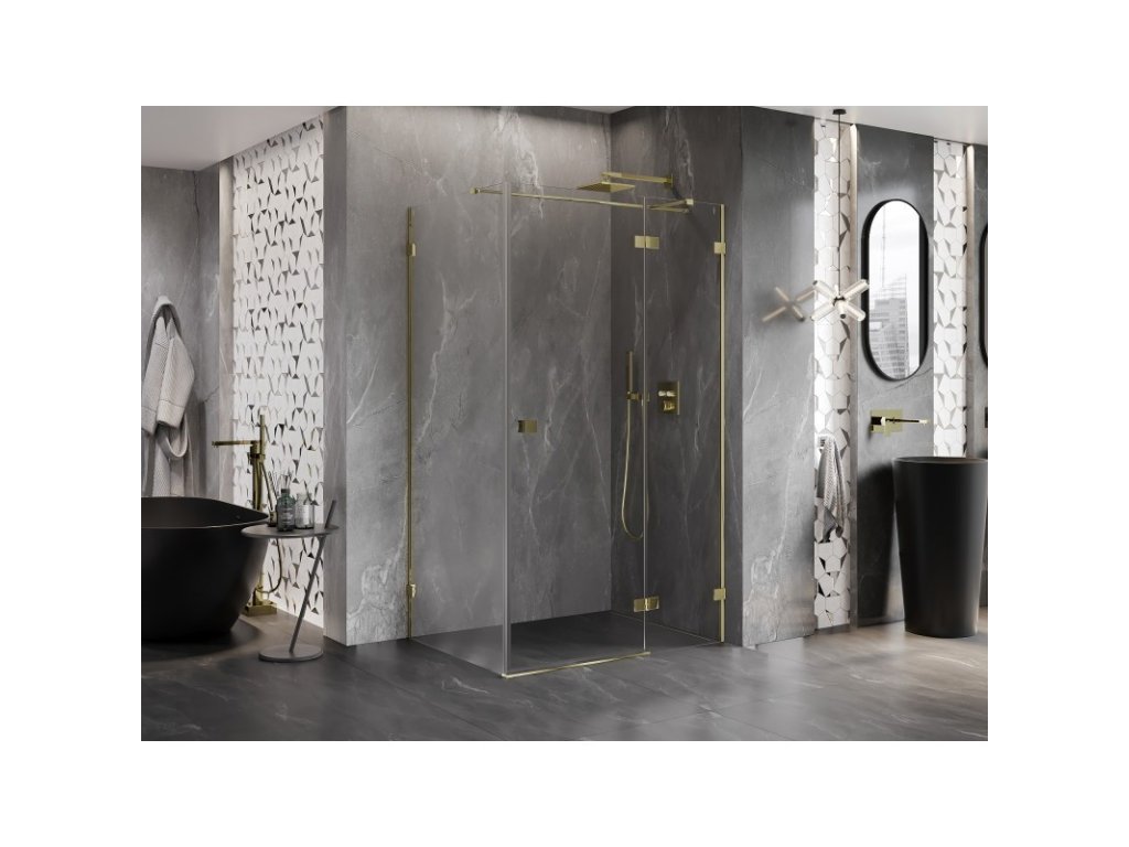 MEXEN/S - Lunar T sprchový kout dveře křídlové pravá 125 x 110, transparent, zlato 834T-125-110-50-00-P