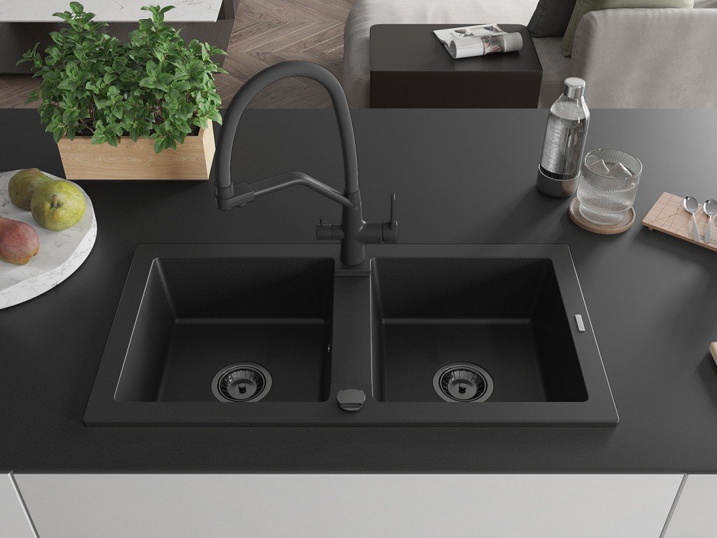 Zakřivené tvary dánského designu a kvalitní materiál - to je dřez MEXEN/S Bruno v černé kropenaté barvě. S elegantním odkapávačem a moderní baterií Flora je tento granitový dřez...