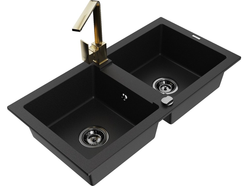 MEXEN/S - Mario granitový dřez 2-bowly včetně baterie Rita, černý 6504-77-670300-50-B
