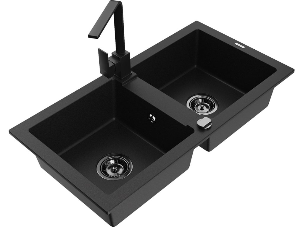 MEXEN/S - Mario granitový dřez 2-bowly včetně baterie Rita, černý 6504-77-670300-70-B