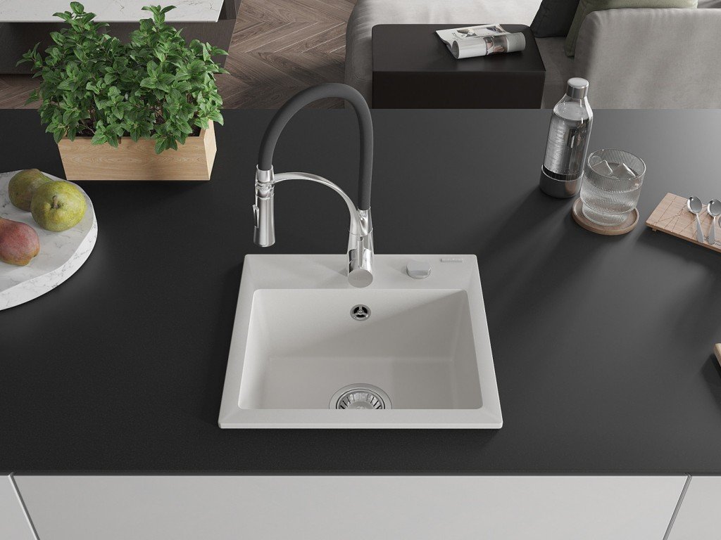 MEXEN/S - Milo granitový dřez 1-miska včetně baterie Aster, bílá 6505-20-73450-07