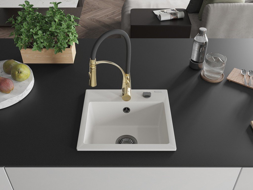 Granitový vestavný dřez Mono 50x52 cm v černé barvě kombinuje moderní design a vysokou odolnost. Vyroben z kvalitního granitového kompozitu, který odolává poškrábání, vysokým...