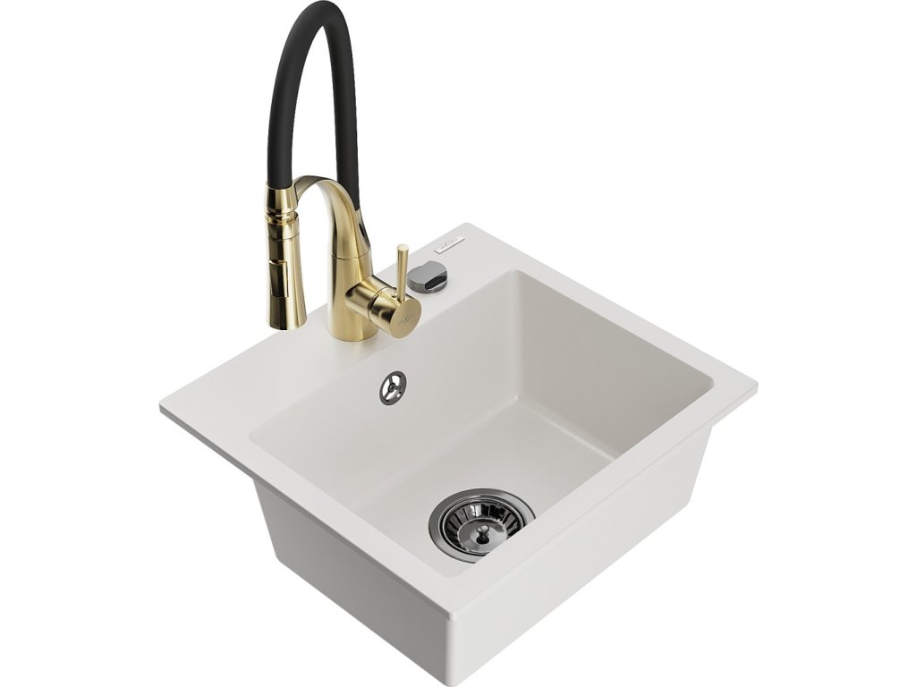 MEXEN/S - Milo granitový dřez 1-miska včetně baterie Aster, bílá 6505-20-73450-57-B