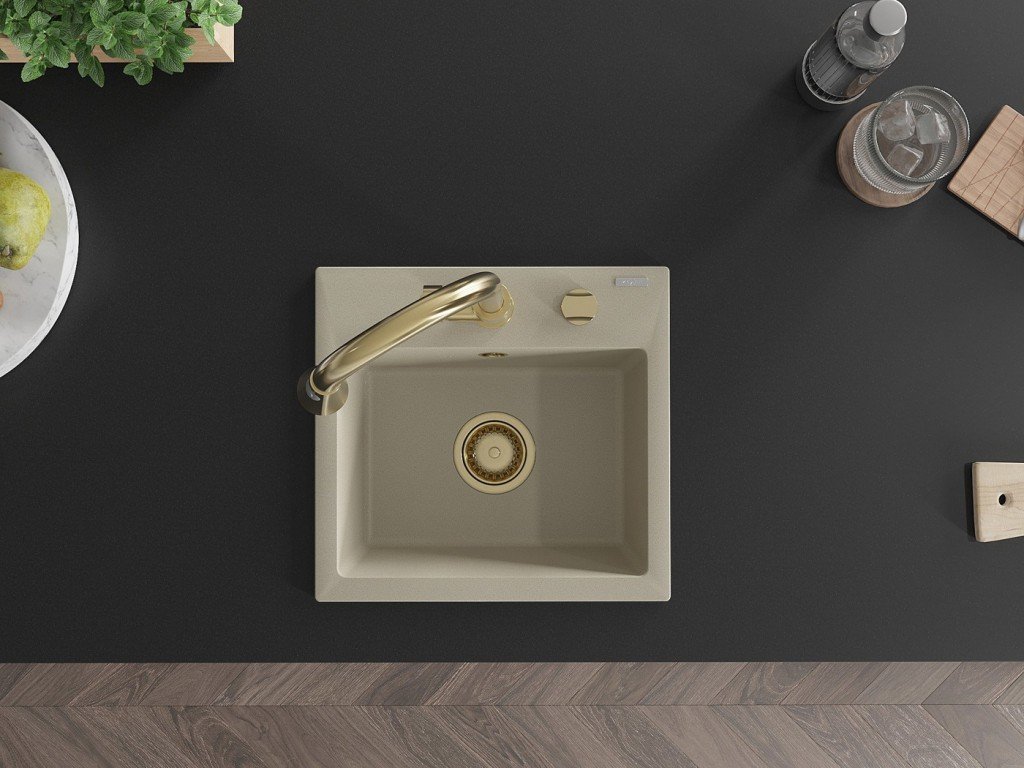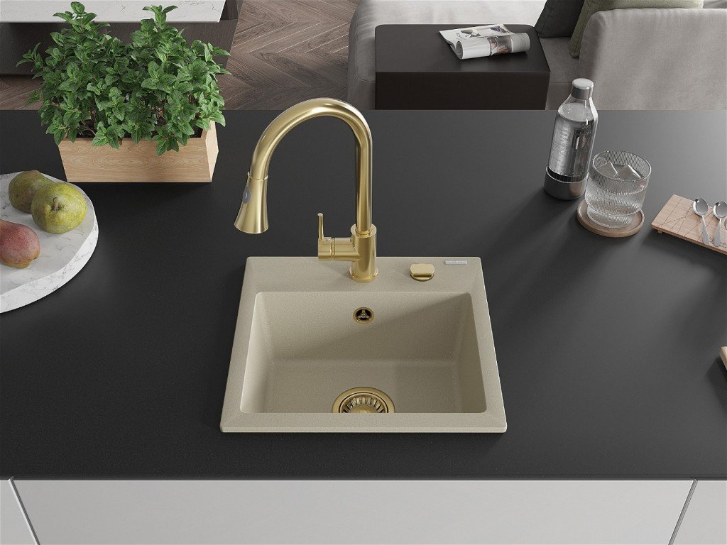MEXEN/S - praktický a stylový granitový dřez s odkapávačem a moderní baterií Telma v šedé béžové barvě. Tento dřez je vyroben z kvalitního granitu, který je odolný proti...