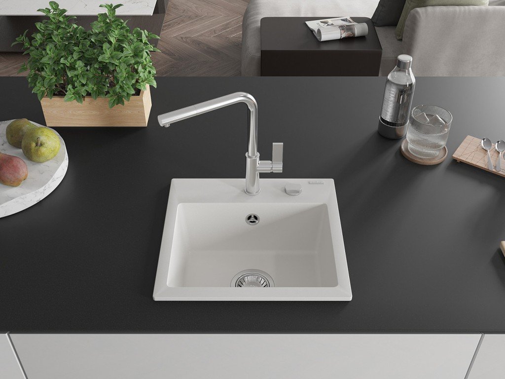Granitový vestavný dřez Mono 50x52 cm v černé barvě kombinuje moderní design a vysokou odolnost. Vyroben z kvalitního granitového kompozitu, který odolává poškrábání, vysokým...