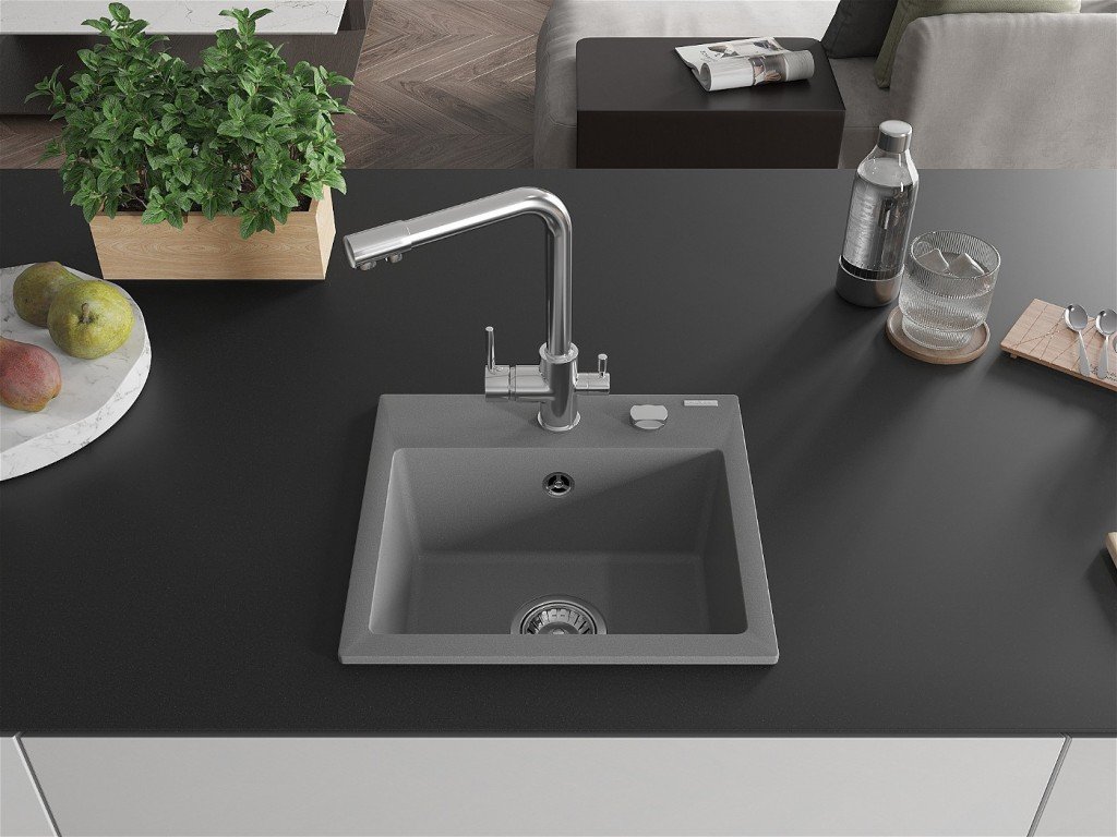 MEXEN/S - Milo granitový dřez včetně baterie Duero, šedá 6505-71-671600-00