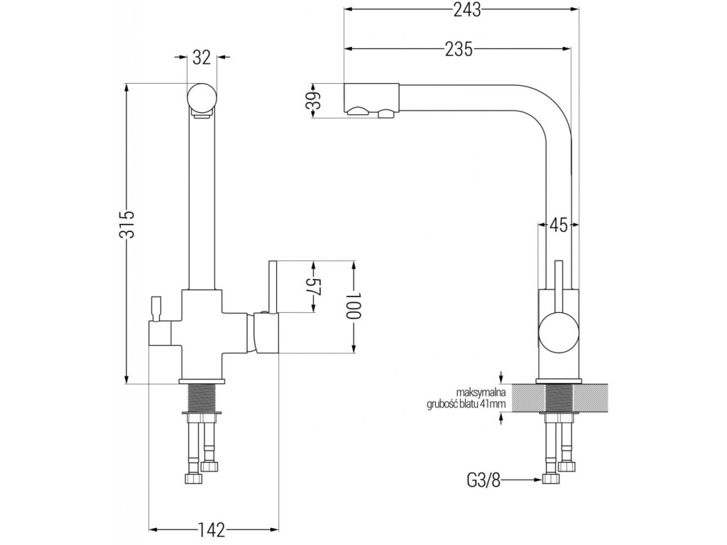 Dvouhlavá baterie s přídavným kanálem pro filtrovanou pitnou vodu