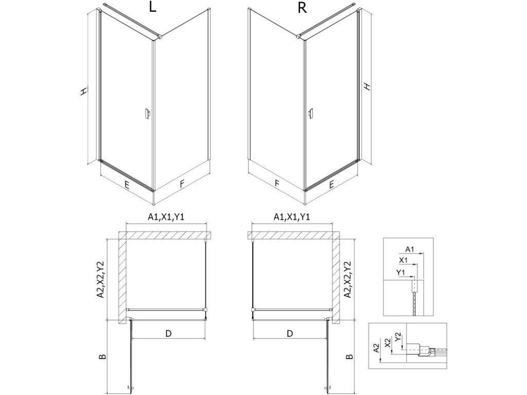 Specifikace produktu: Rozměr: 100x100 cm (pravé dveře 100 cm, stěna 100 cm) Výška: 200 cm Strana montáže: Pravá Vchod: Dveře s otočnými panty Barva skla: Černá mřížka Povrchová úprava: Černá Profil: Hliník Konzola: Nerezová ocel Max. délka konzoly: 150 cm Konzolu lze řezat Typ skla: Tvrzené Tloušťka skla: 6 mm Povrchová úprava pro snadné čištění Nastavitelná šířka Možnost montáže na sprchovou vaničku nebo dlaždice Mechanismus zvedání a spouštění dveří Magnetický proužek a elastomerové těsnění pro odtok vody Hliníkový práh těsnění dveříDoplňkové parametry