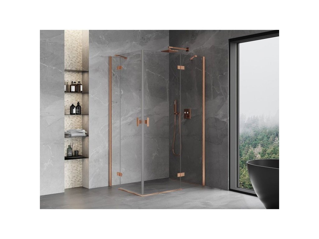 MEXEN/S - Mist H Duo sprchový kout dveře křídlové 70 x 80, transparent, měď kartáčovaná 8A5-070L-080P-65-00