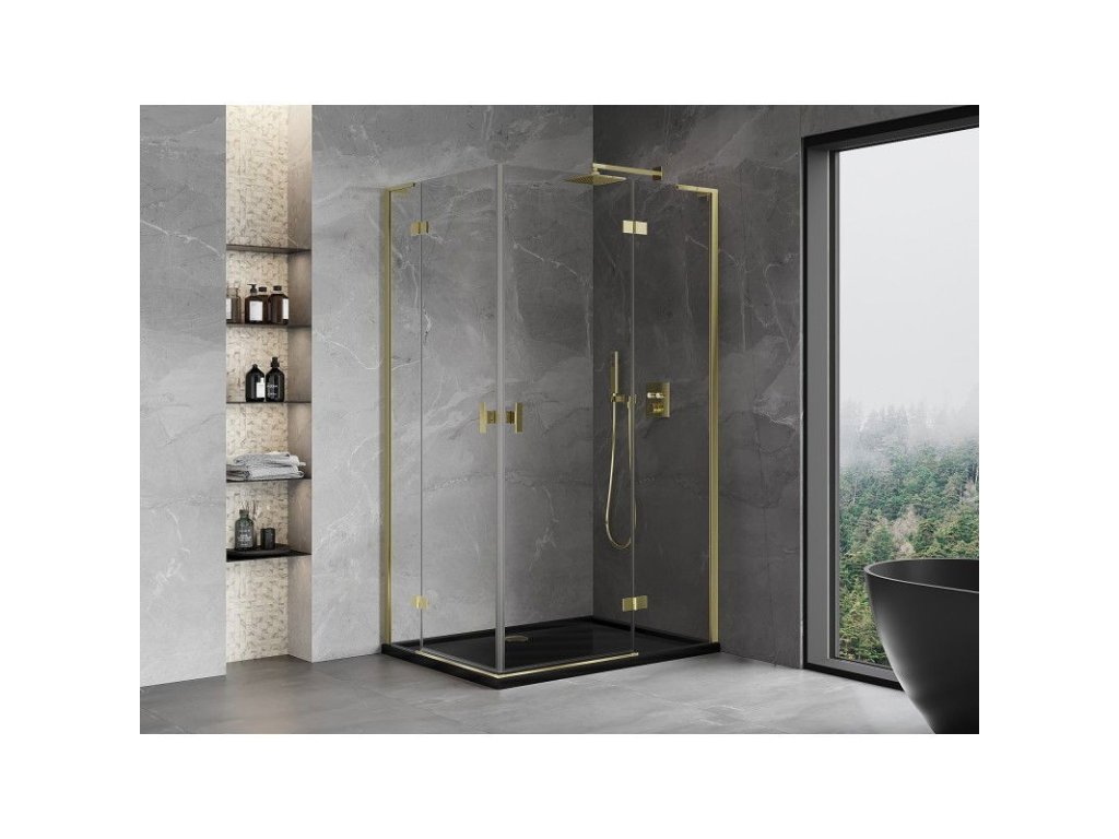 MEXEN/S - Mist-H L Duo sprchový kout dveře křídlové 75 x 90, transparent, zlato 8A5L-075L-090P-50-00