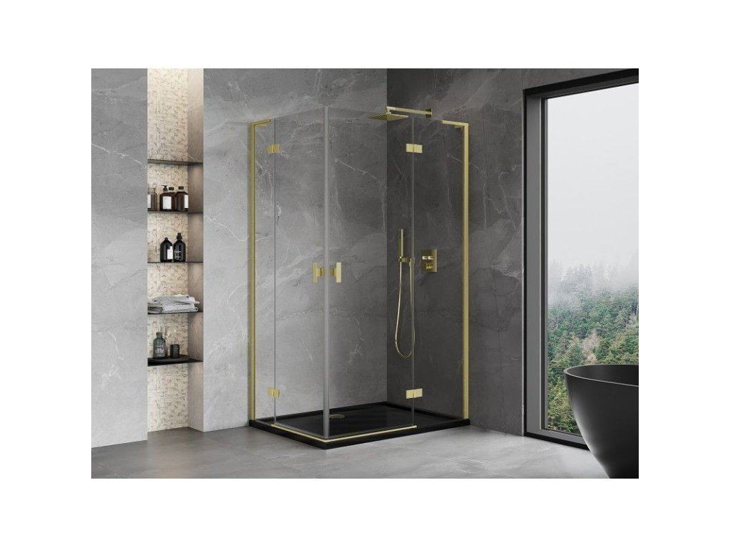 MEXEN/S - Mist-H L Duo sprchový kout dveře křídlové 80 x 90, transparent, zlato kartáčovaná 8A5L-080L-090P-55-00