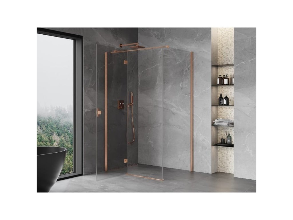 MEXEN/S - Mist H T sprchový kout dveře křídlové levá 95 x 70, transparent, měď kartáčovaná 8A5T-095-070-65-00-L