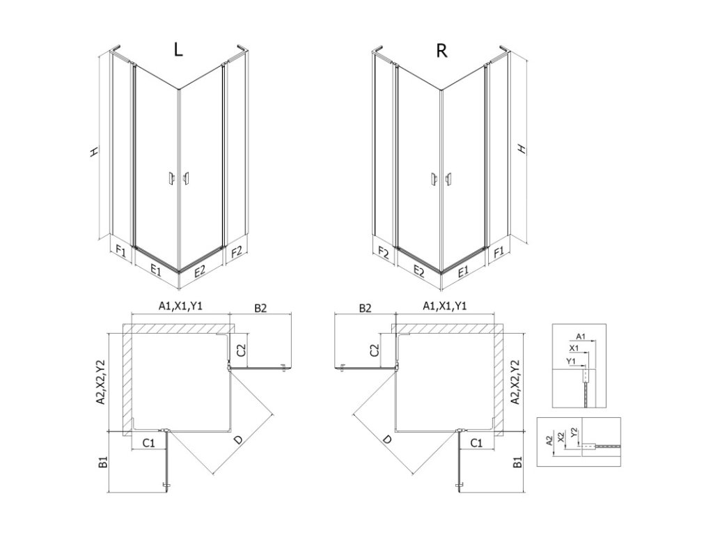 Specifikace produktu:Rozměr: 115x100 cm (levé dveře 115 cm, pravé dveře 100 cm)