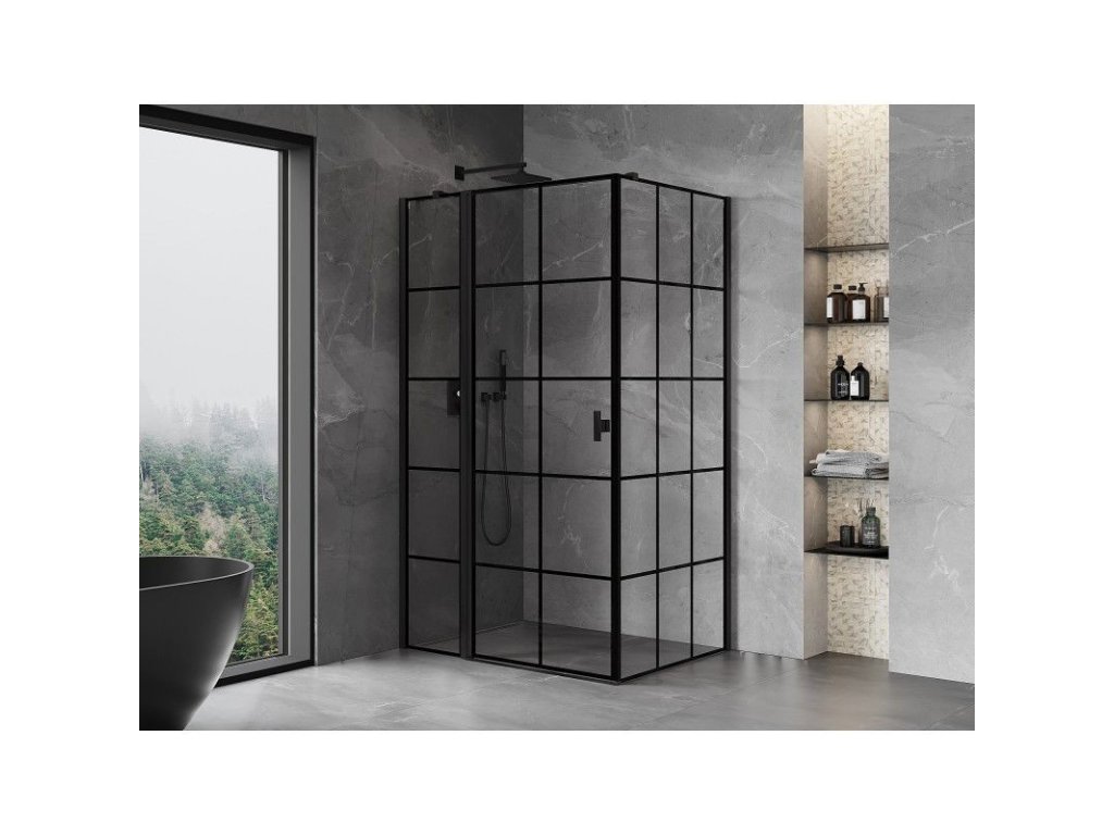 MEXEN/S - Mist T sprchový kout dveře křídlové levá 95 x 90, černá dekor, černá 8A4T-095-090-70-77-L