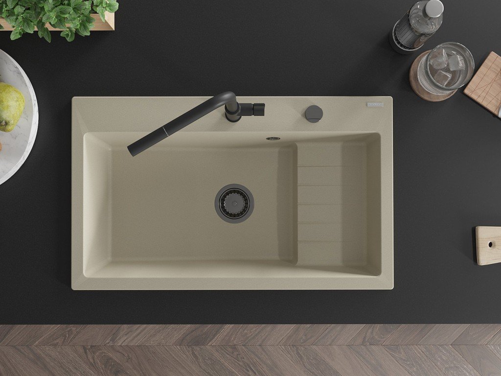 MEXEN/S - Omar granitový dřez 800 x 480 mm, béžová, černý sifon 6520801005-69-B