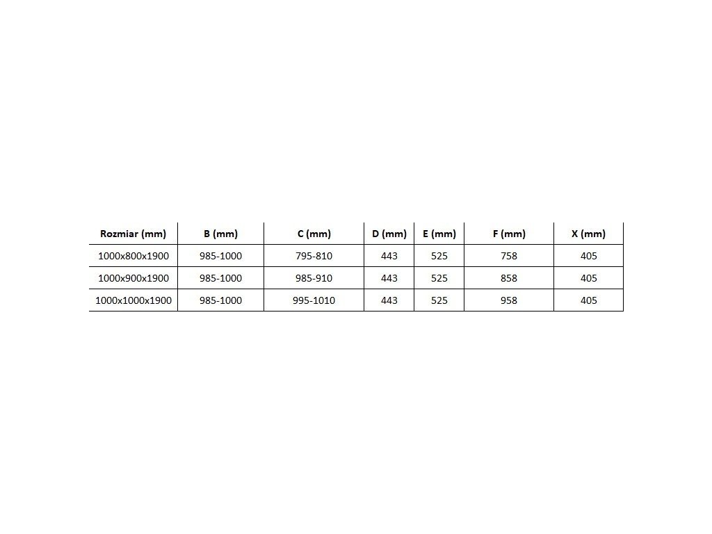 Rozměr: 100x90 cm (dveře 100 cm, stěna 90 cm)