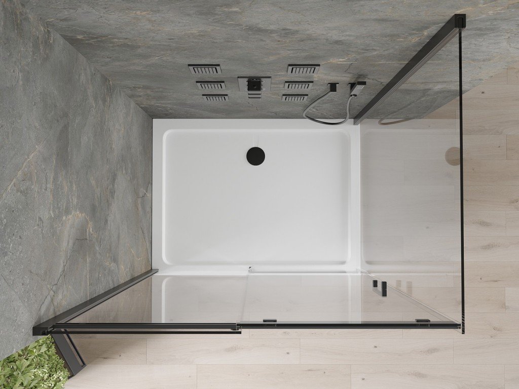 MEXEN/S - Omega sprchový kout 110x80, transparent, černá + bílá vanička se sifonem 825-110-080-70-00-4010B