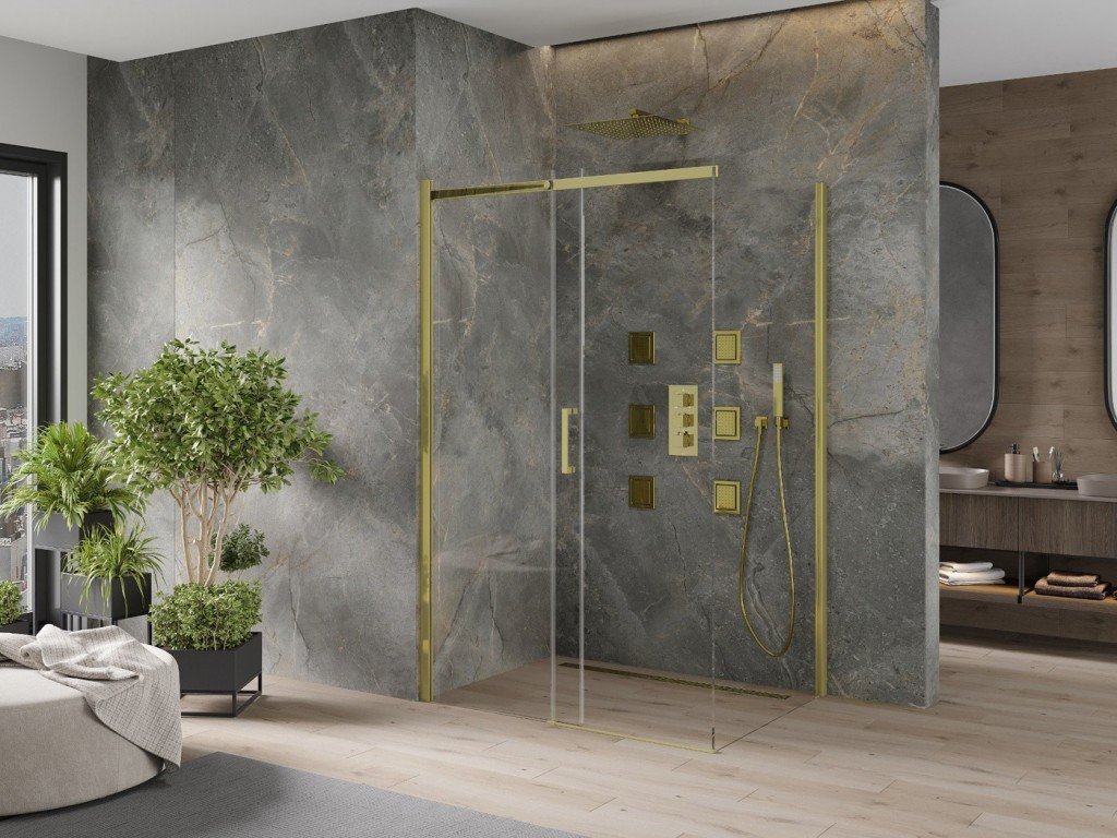 Jedinečný nástěnný sprchový i vanový set s příslušenstvím ASPIRA zlatá barva. Kompletní řešení pro vaši koupelnu. Set obsahuje baterii, hlavovou sprchu s držákem, vývod ze stěny...