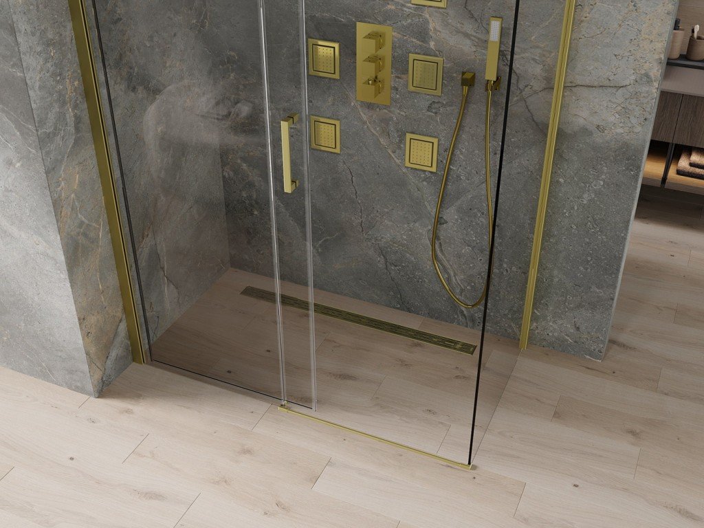 MEXEN/S - OMEGA sprchový kout 140x80, transparent, zlatá 825-140-080-50-00