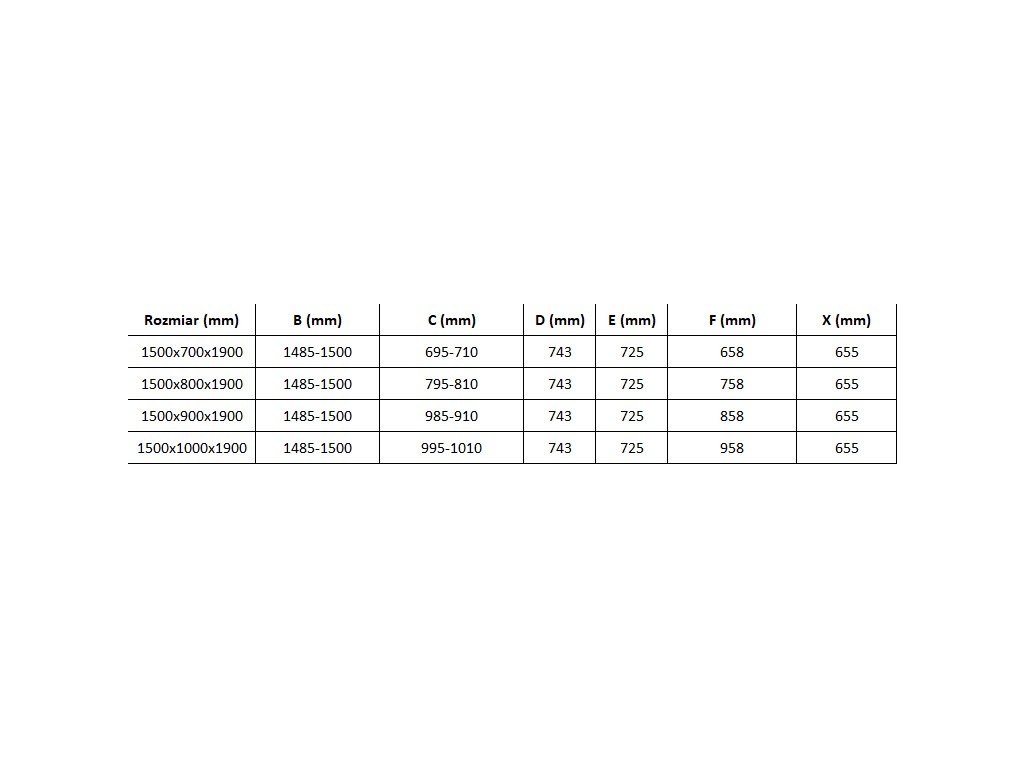 Rozměr: 150x80 cm (dveře 150 cm, stěna 80 cm)