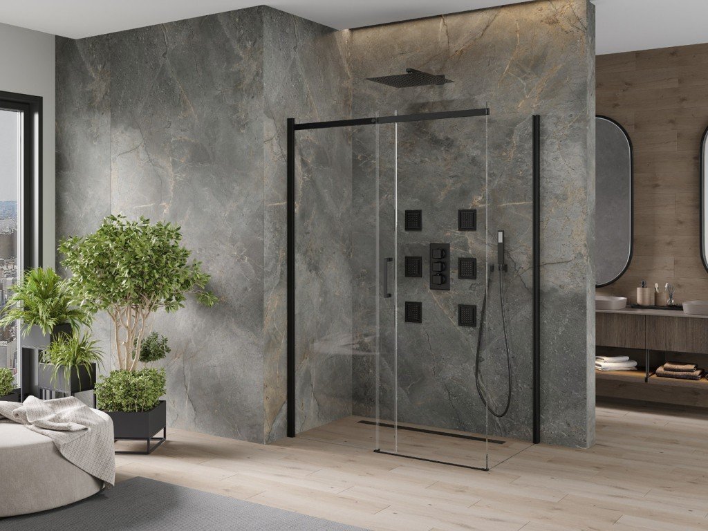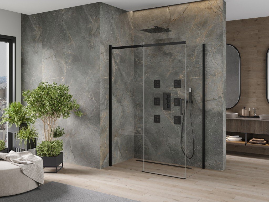 Jedinečný nástěnný sprchový set s příslušenstvím DECCO/ILLUSION v černé barvě. Kompletní řešení pro váš sprchový kout. Set obsahuje baterii, hlavovou sprchu s držákem, vývod ze...