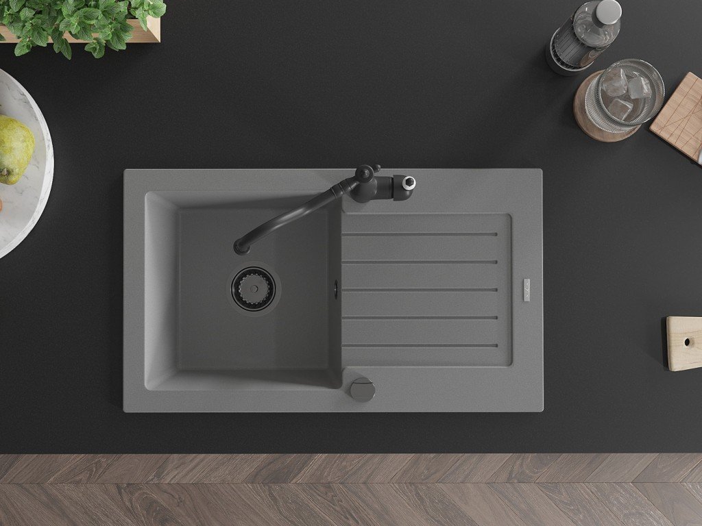 MEXEN/S - Pablo granitový dřez 1-miska s odkapávačem včetně baterie Carla, šedá 6510-71-670700-70-B + slevový kód