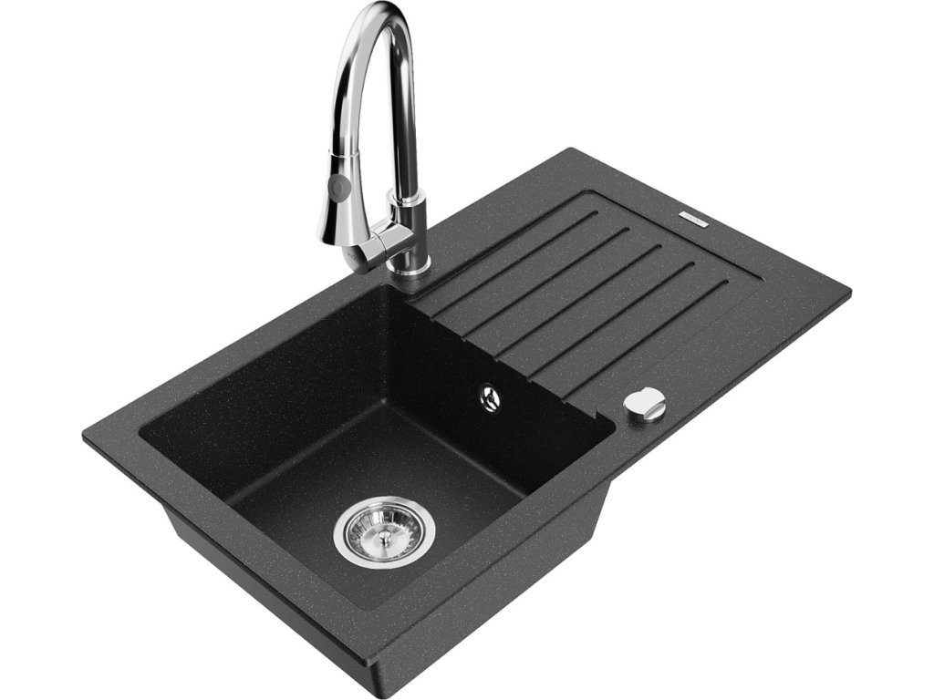 Granitový vestavný dřez s odkapem 77x44 cm v černé barvě kombinuje moderní design a vysokou odolnost. Vyroben z kvalitního granitového kompozitu, který odolává poškrábání,...