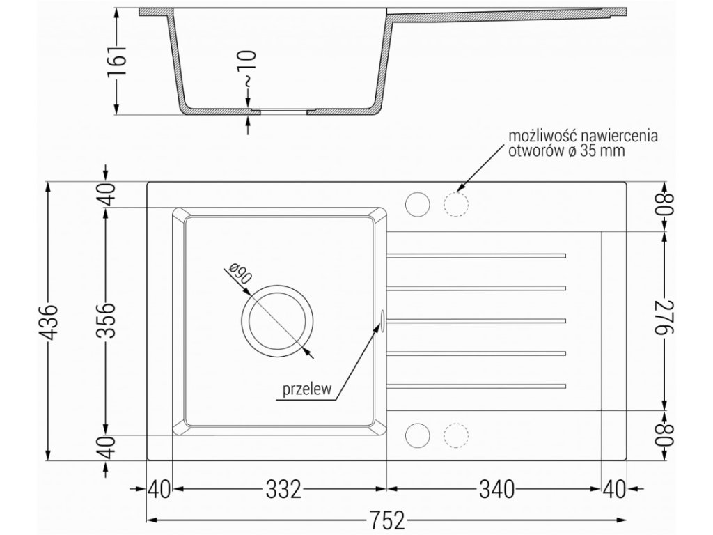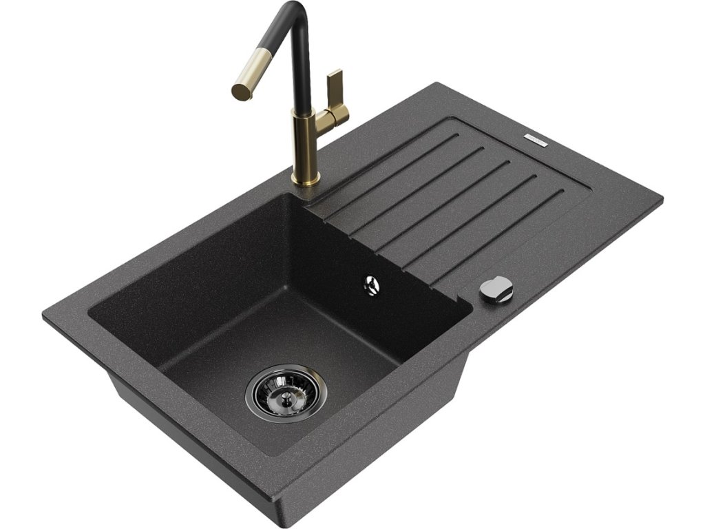 Granitový vestavný dřez s odkapem 77x44 cm v černé barvě kombinuje moderní design a vysokou odolnost. Vyroben z kvalitního granitového kompozitu, který odolává poškrábání,...