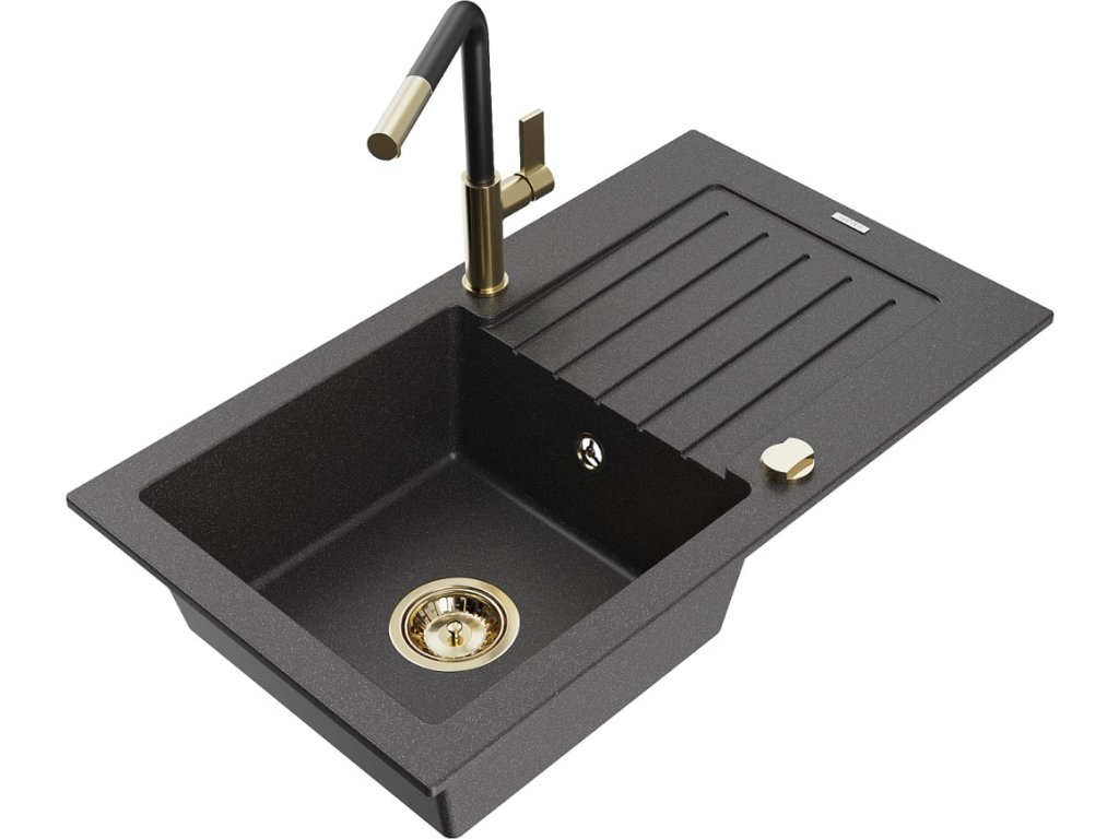 Granitový vestavný dřez s odkapem 77x44 cm v černé barvě kombinuje moderní design a vysokou odolnost. Vyroben z kvalitního granitového kompozitu, který odolává poškrábání,...
