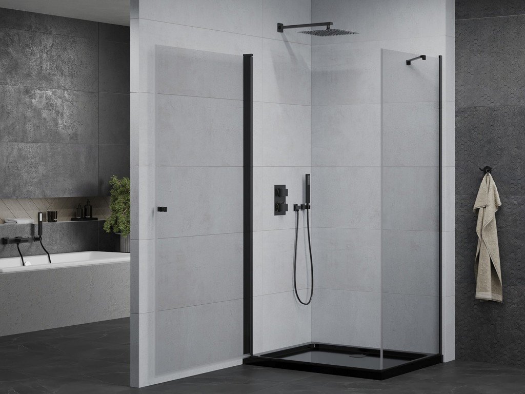PRETORIA křídlové dveře 90x190 cm 6mm, černé, transparent (852-090-000-70-00)Pokud jste ve fázi, kdy stavíte nebo rekonstruujete, a ještě pořádně nevíte, kudy budete do sprchy vcházet, křídlové dveře do sprchového koutu PRETORIA budou perfektní variantou. Jsou univerzální. Můžete je namontovat s otevíráním vpravo nebo vlevo.