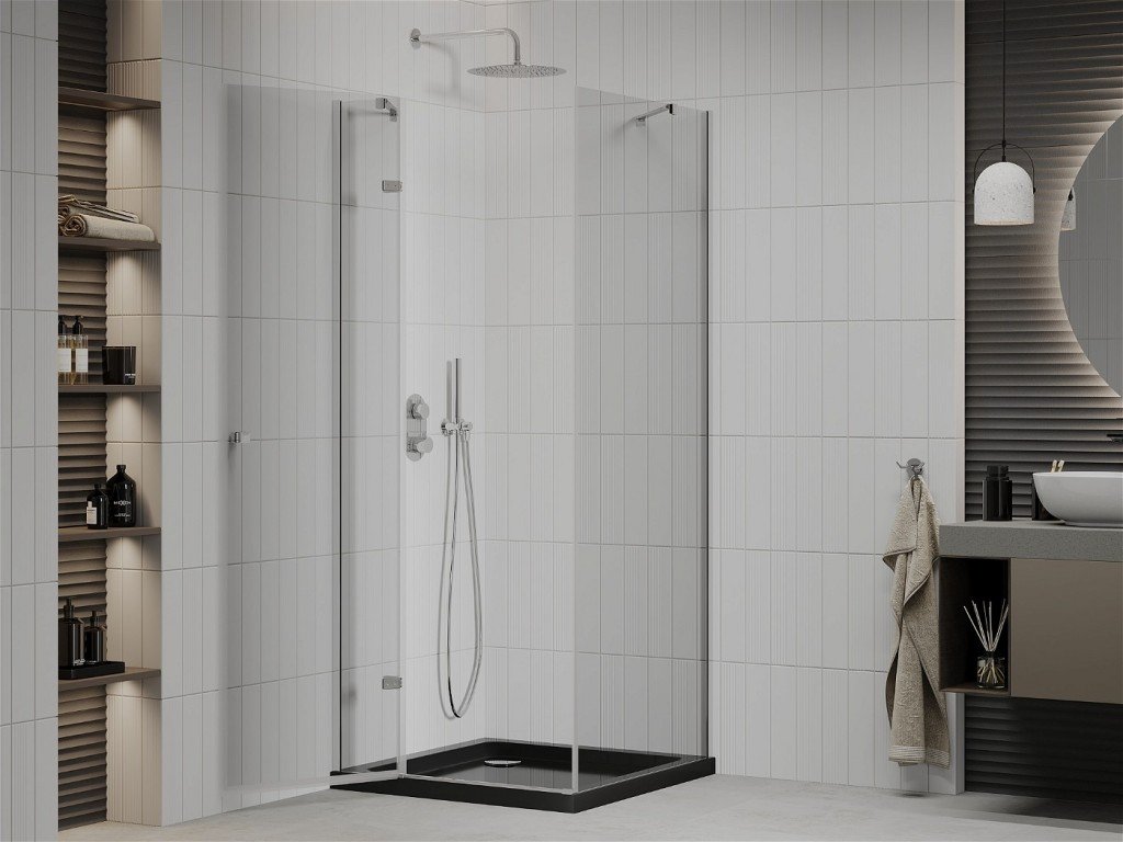 MEXEN/S - Roma sprchový kout 80x80, transparent, chrom + černá vanička se sifonem 854-080-080-01-00-4070