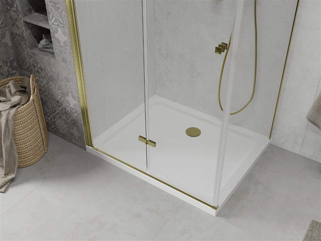 MEXEN/S - Sprchový kout zalamovací Lima 100x80, čiré sklo, zlatý + vanička 856-100-080-50-00-4010