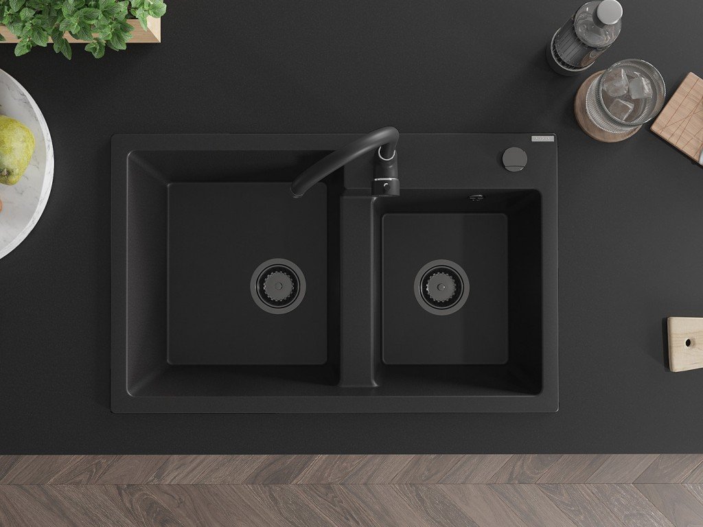 MEXEN/S - Tomas granitový dřez 2-bowl 800 x 500 mm, černá, + černý sifon 6516802000-77-B