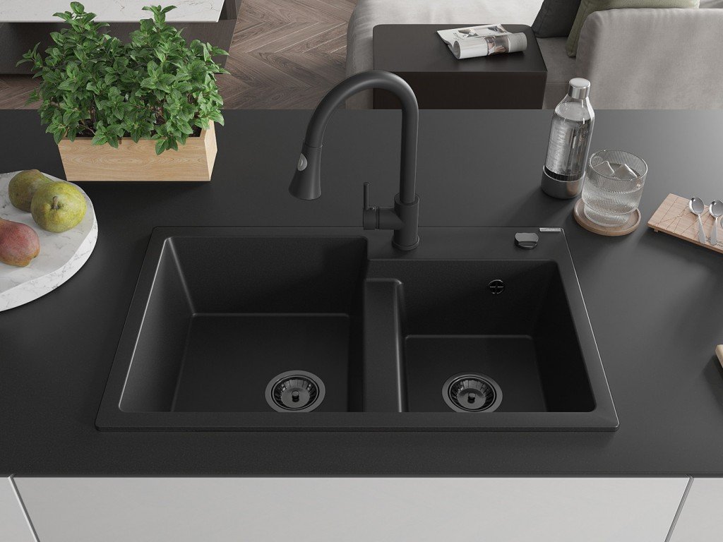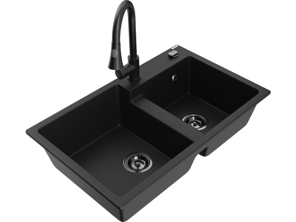 Zakřivené tvary dánského designu a kvalitní materiál - to je dřez MEXEN/S Bruno v černé kropenaté barvě. S elegantním odkapávačem a moderní baterií Flora je tento granitový dřez...