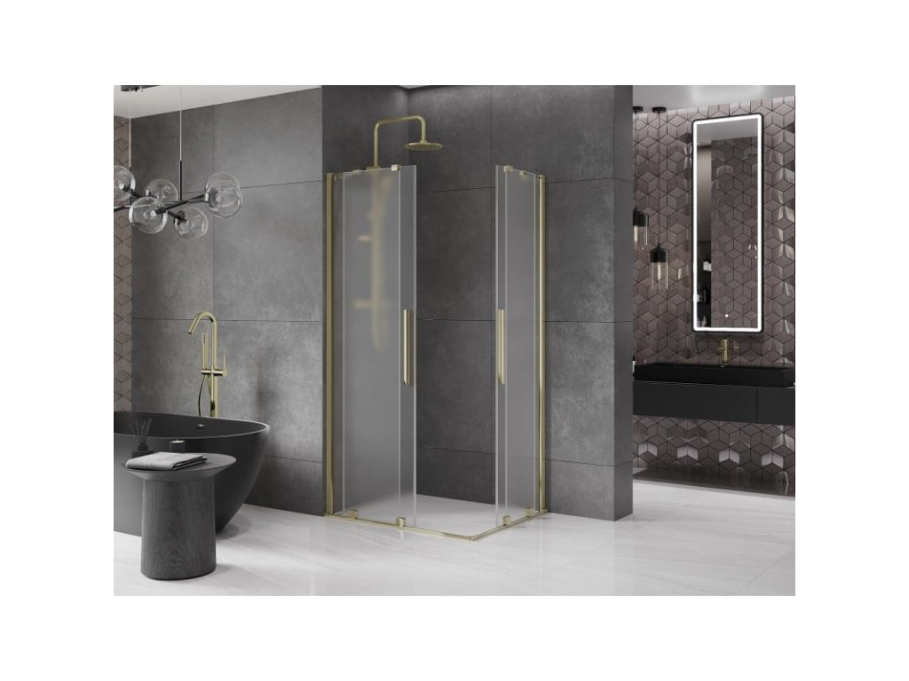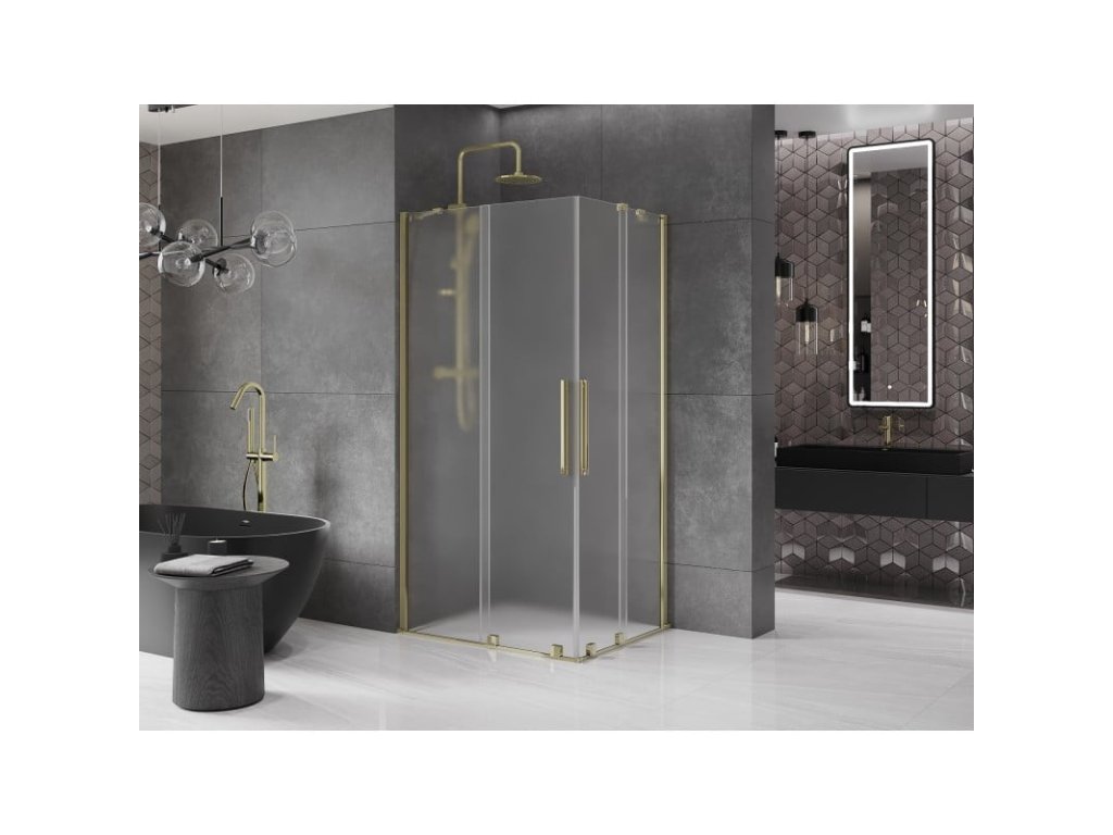 MEXEN/S - Velar Duo sprchový kout, posuvné dveře 90 x 80, dekor, zlato 871-090-080-32-50