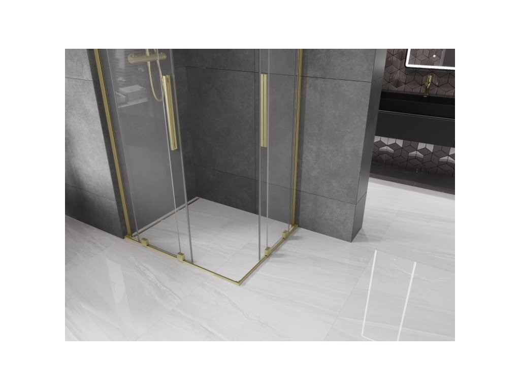 MEXEN/S - Velar L Duo sprchový kout, posuvné dveře 100 x 90, transparent, zlato kartáčovaná 871-100-090-02-03-55