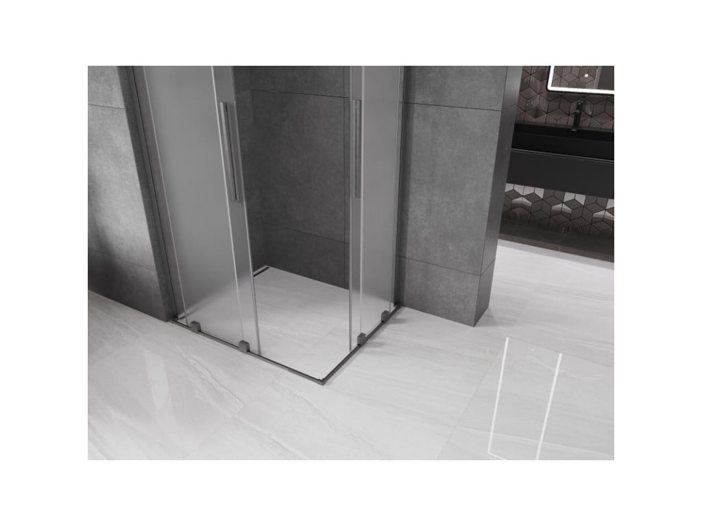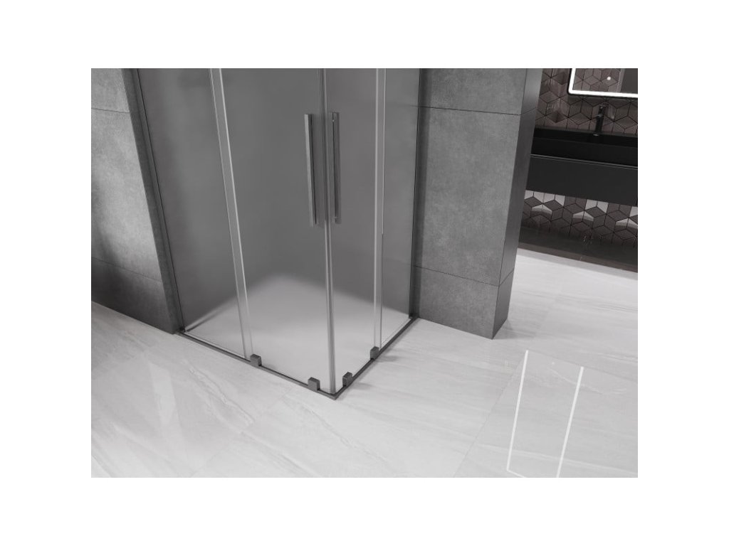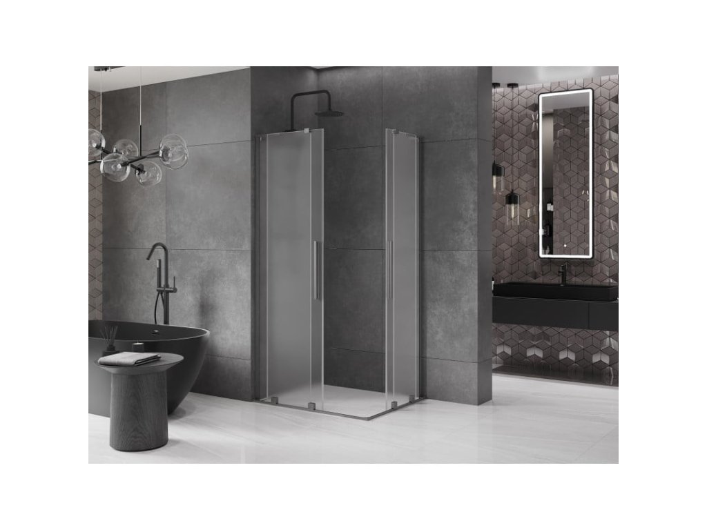 MEXEN/S - Velar L Duo sprchový kout, posuvné dveře 90 x 80, dekor, gun gray kartáčovaná 871-090-080-02-33-66