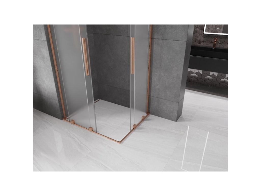 MEXEN/S - Velar L Duo sprchový kout, posuvné dveře 90 x 80, dekor, měď kartáčovaná 871-090-080-02-33-65