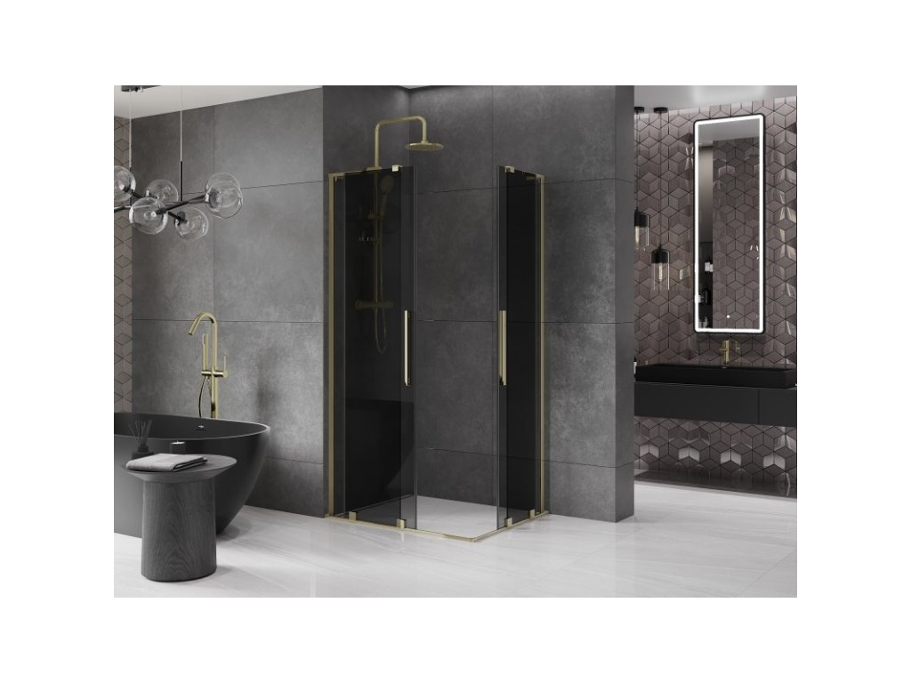 MEXEN/S - Velar L Duo sprchový kout, posuvné dveře 90 x 80, grafit, zlato 871-090-080-02-43-50