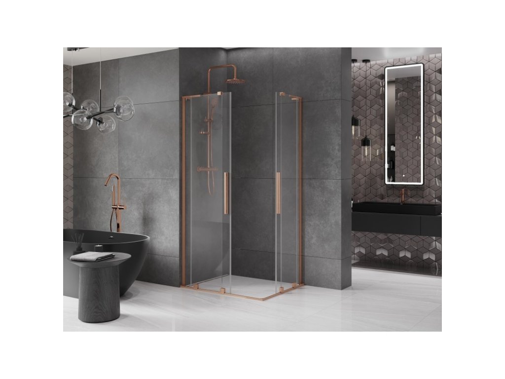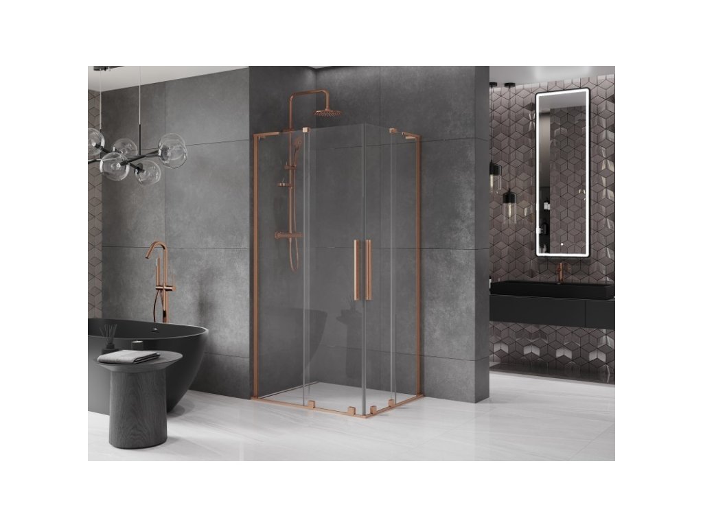MEXEN/S - Velar L Duo sprchový kout, posuvné dveře 90 x 80, transparent, měď kartáčovaná 871-090-080-02-03-65