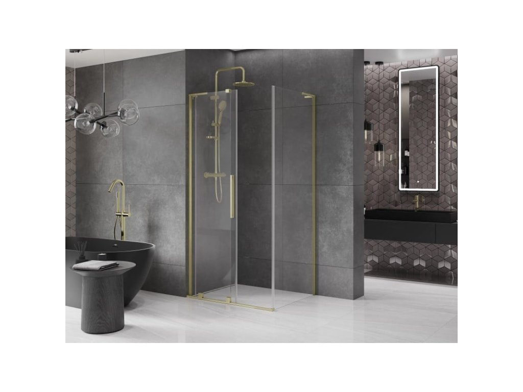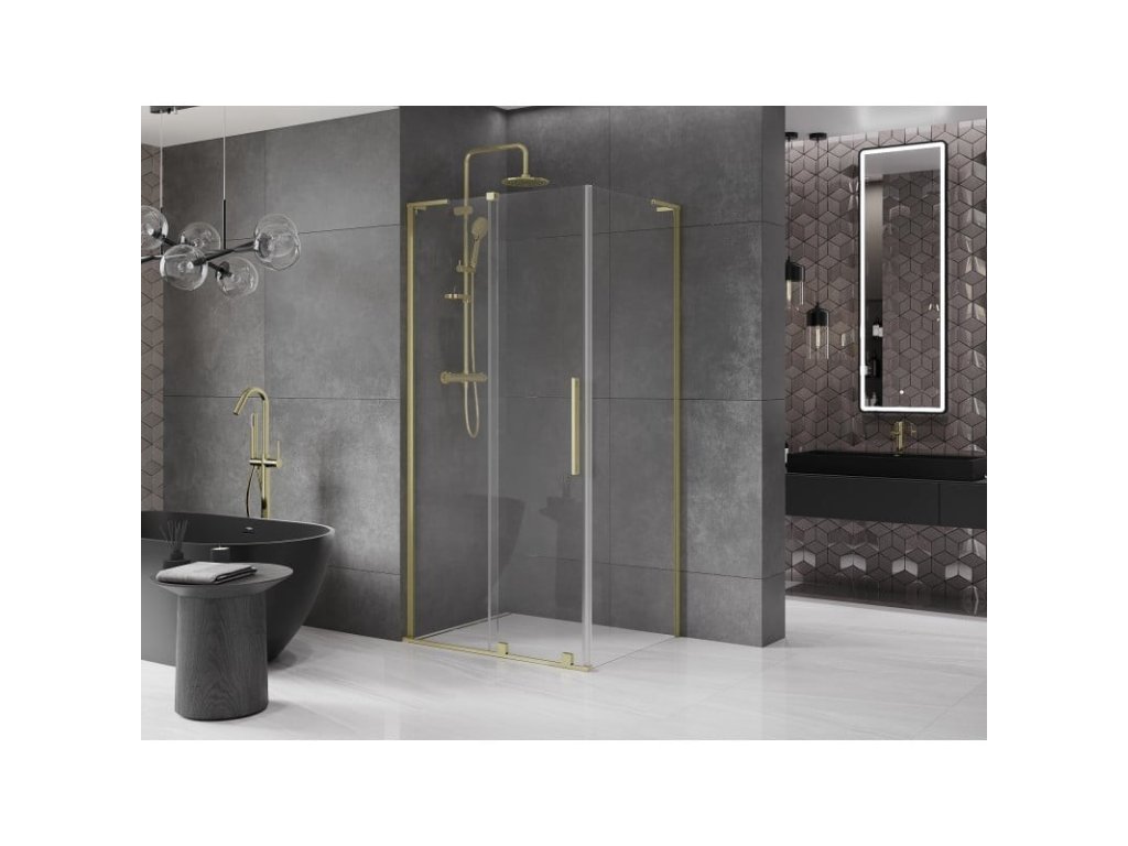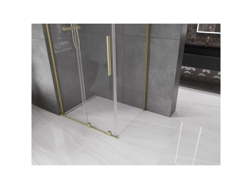 MEXEN/S - Velar L sprchový kout, posuvné dveře 100 x 90, transparent, zlato kartáčovaná 871-100-090-03-55