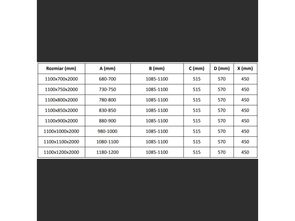 Specifikace produktu:Rozměr: 110x80 cm (dveře 110 cm, stěna 80 cm)