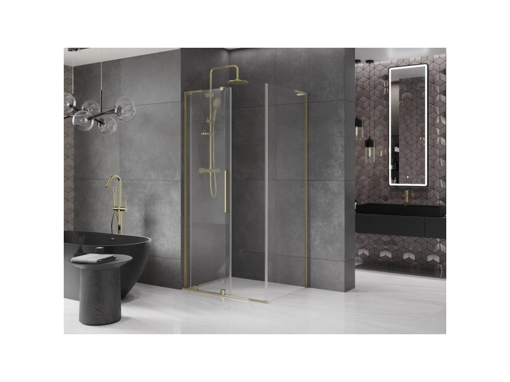 MEXEN/S - Velar L sprchový kout, posuvné dveře 110 x 80, transparent, zlato 871-110-080-03-50