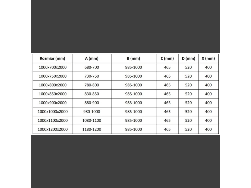 Specifikace produktu:Rozměr: 100x120 cm (dveře 100 cm, stěna 120 cm)