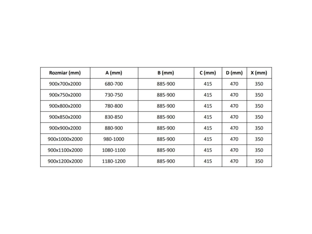 Specifikace produktu:Rozměr: 90x120 cm (dveře 90 cm, stěna 120 cm)